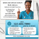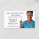 Affärskort för hälsovård med eget anpassningsbar (tillval). Den här designen fungerar bäst med ett genomskinligt foto. På baksidan finns listor med de olika tjänster som erbjuds. Ett modernt affärskort för ett företag med privata sjuksköterskor eller andra professioneller som arbetar med den åldrande befolkningen.