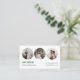 Ett snyggt, platt affärskort för en professionell fotograf där du kan visa ditt arbete med tre runda foton bredvid varandra på det vita, moderna affärskortet Fotografi. Lägg till ditt namn och din specialitet eller titel eller tjänst på omslaget tillsammans med media eller webbplats i social. Lägg till kontaktinformationen på baksidan i elegant soft grått typsnitt. Modern och minimalistisk professionell fotograferar affärskort i vit och grått personlig med dina foton utskrivna i färg inuti runda fotomallar.