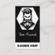 Framsida: Svart och vit logotyp med en skäggig man med vågigt hår, följt av ditt företags/personnamn och salongstyp (standard: barberarsalong).