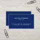 En modern, minimal, marinblå mall för visitkort med anpassade-mall fält för namn, rubrik/företag namn och kontaktinformation. Lägg till en logotyp, en bild eller ett foto på baksidan eller ändra typsnitt, teckensnitt, färger, färg på bakgrunden osv. med verktygen för anpassning. Den här utformningen av affärskortet för elegant kan anpassas för att marknadsföra dina tjänster eller produkter i många fält, t.ex. konsultverksamhet, gods, ekonomi, försäkring, hälsa, skönhet, träning, livsstil, IT, datorer och mycket annat.