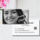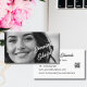 Enkel utformning av Affärskortet för minimal Professionell i svartvitt med QR-kod på motsatt sida. På framsidan finns ställe för fotot - bilden visas i svartvitt. På framsidan finns en ställe för ditt namn skriven som om det vore en namnteckning i hörnet. Observera att någon av social-ikonerna kan tas bort från mallen om de inte behövs.