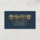 En krävande professionell, en modern rörmokars affärskort. En vatten-droppdesign överst avgränsas från ett blått lagrar nedanför med en faux guld-linje. Att riva denna framgångslinje i guld är en guld-logotyp som man kan använda. Er prestigefyllda namn, befattningens titel och en slogantitel är över vid högernas vägg. Bara under detta finns affärsuppgifterna namn och kontaktuppgifter. På andra sidan, i ett mörk blått täckmantel, finns en guld-logotyp som består av fyra ikoner som kan representera några av de tjänster som du tillhandahåller. Detta följs av er prestigefyllda namn, kontaktinformation och ett sloganalternativ för att publicera dina tjänster. En underbar utformning för rörmokare. #plumbers #plumbering #plumbingprovider #plumbingservice #plumbingreparation #pipe #vattenpipe #pipefitter #faucet #homeplumbering #zazzlemade