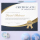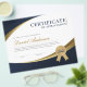 Blå- och guld-professionell-certifikat innehåller en guld-medalj.