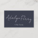 Gör ett bestående intryck med den här utformningen av affärskortet för chic och professionell. Med fet marin bakgrund på ena sidan med ditt namn i skript för elegant skapar det ett sofistikerat men åtkomligt utseende. På baksidan finns ren vit layout med namn, titel och kontaktuppgifter som är väl ordnade för att underlätta läsning. Perfekt för entreprenörer, frilansare, konsulter eller kreativ, denna utformning balanserar elegans och modern minimalism. Med anpassade text fält kan du enkelt uppdatera ditt namn, titel, webbplats, e-post, mobil och social-medieferens till kostym som ditt företag behöver.