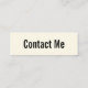 Det här mini-kräm-affärskortet säger "kontakta mig" på affärskortets framsida. På baksidan finns fyra linjer visning text för ditt namn och kontaktinformation, t.ex. ditt mobila nummer, e-postens adress och/eller social medieferens. All text kan redigeras eller tas bort.