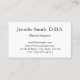 Denna underskattade utformning av affärskort, professionell och konservativ skulle kunna användas av en professionell som tandläkare, kosmetisk tandläkare, pediatrisk tandläkare eller allmäntandläkare. Namn, yrke och kontaktuppgifter kan anpassas.