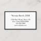Det här professionell tandläkarbesökskortet är dubbla-sidigt. Båda sidor har en elegant svart gräns. Sida ett säger "Ditt nästa Möte" och har linjer för datum och tid för det möte. I grund finns det visning som du kan redigera för att skapa ett anpassningsbar-meddelande om du vill. (Visas: Var vänlig och meddela 24 timmar i förväg om det inte går att behålla din möte.) Sida två har visning som ska ersättas med tandläkarens namn (eller praktik namn) och dess adress, mobila nummer och webbplats. All text kan redigeras eller tas bort. Texten är svart.