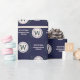 företagets namn professionell elegant företagsmonogram-inslagning marinblå bakgrund, Ge förpackningar sofistikerad och tidlös stil med vår Elegant Wreath Monogram Presentinslagning. Designad med ett anpassningsbart monogram omgivet av en raffinerad lagerkrans, är detta mångsidiga inslagningspapper perfekt för både professionellt och butiksbruk. Finns i flera utvalda färgteman, varje variation skapar en unik stämning som passar ditt varumärke eller säsongsbehov lyx Företag, Marinblå bakgrund.