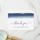 Kreativ och ett unikt, enkelt tack för ditt kort med en enkel design med en konstnärlig marin blå vattenfärgsborstlinje överst tillsammans med ord, "tack" i ett handskript med dekorationer över en vit bakgrund. Baksidan har ditt personliga meddelande. Denna moderna och professionell utformning är underbar för många företag.