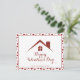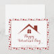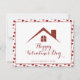 Önska dina fastighetskunder en "Glad Alla Hjärtans Dag" med detta anpassningsbara marknadsföringskort med ett rött glitterhus och en röd Alla Hjärtans-dags ram.