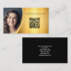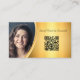 Med en bakgrund i guld med centrerad överstrålning ställs affärskortets utformning in, som innehåller anpassningsbarnas fotokod och QR-kod på framsidan med affärsinformation på baksidan. Fyll i fälten eller anpassa mallen för att välja ett typsnitt stil, storlek och färg som du vill använda. Se till att du lägger till DITT QR-nummer och ett lodrät-foto. Använda QR-kodlänken om du vill skicka kunder till recensioner, foton, din webbplats eller någon annan viktig länk.
