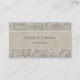 Detta är ett professionell, ett attraktivt affärskort för alla professioneller. Den har en söt, gammaldags blommigt snurrande mönster i sidans grönt, beige och vit fram och bak, med dina uppgifter inneslutna i en halvgenomskinlig matchande grönt grått fält som gränsar till tunt vitt linjer. Båda sidor av kortet har samma bild med anpassadet. Texten fält utökas för att vid behov innehålla mer information. Mycket snyggt och distinkt! Enkel anpassad till nästan alla företag eller yrken.