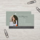 affärskortet elegant och professionell agent med ett bågfoto som gör ett underbart första intryck. Den här designen har ditt namn i handskriven text, logotyp i monogram och titel i blockering på en dammig blå bakgrund och grönt. Ändra enkelt kontaktnummer, e-post, webbplats och adress för att representera ditt företag.