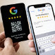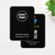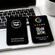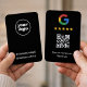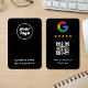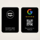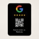 Denna eleganta design har en djärv svart bakgrund med ren vit typografi, ett cirkulärt logoområde och en modern recensionsfokuserad layout. Fram- och baksidans design inkluderar en framträdande QR-kod, fem gyllene stjärnor och en färgrik Google-inspirerad recensionsgrafik för en polerad, professionell look. Dess minimalistiska estetik gör den särskilt tilltalande för småföretag, salonger, kaféer och servicevarumärken som vill ha en skarp och modern visuell identitet. Den enkla layouten håller fokus på varumärkesigenkänning och enkel kundengagemang.