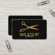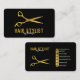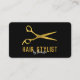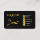 En modern hårsax i guld med chic svart bakgrund perfekt för hårstilister eller skönhetssalonrelaterade företag. Ett enkelt och professionell sätt att presentera ditt företag. Anpassa medieinformationen för företag och social för att skapa ditt eget unika affärskort.