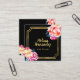 Professionell Hairstylist Blommigt Rosa Black Guld Fyrkantigt Visitkort