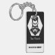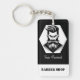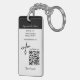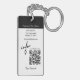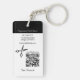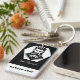 Denna reklamnyckelring ger ett professionellt, elegant och trendigt första intryck. Den är sammansatt enligt beskrivningen nedan: Framsida: Svart logotyp på vit bakgrund med en skäggig man med vågigt hår, följt av ditt företagsnamn/personnamn och butikstyp (standard: herrfrisör). Baksida: slogan, fullständiga kontaktuppgifter, en QR-kod för enkel webbplatsåtkomst och en liten teckning som representerar professionella frisörssaxar.