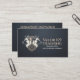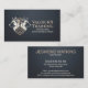 Ett elegant och ledande affärskort som är designat för professionellens hund och K9-specialister. Framsidan har ett starkt emblem av två belgiska malinois, kända för sin intelligens, fokusering och drivkraft, parade med en djärv vapensköld för ett modernt, auktoritativt utseende. Den djupa marin och metallisk tonen skapar ett raffinerat stil som förmedlar styrka och professionalism, skapar det som ett idealiskt val för tränare som är inriktade på lyhördhet, hundar eller skyddsutbildning.