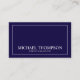 Affärskortet Klassisk marin blå och vit professionell med information i vitt och grått klassiskt serif font stil med vit rektangel gräns.