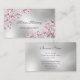 Detta professionella visitkort har rosa körsbärsblomgrupper på en falsk silverfolie bakgrund och ett elegant klassiskt typsnitt. Lämplig för sminkartister, spa, trädgårdsdesign, bröllopsplanerare, evenemangsplanerare, kosmetologer, skönhetssalong...