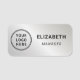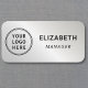 Professionell namnskylt med din verksamhet eller organisations logotyp på en silverfärgad metallisk bakgrund. Lägg till namn och titel eller position i enkel typografi.