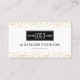 affärskort för personlig med trendigets vita bakgrund, företagets logotyp, guld glitter och företagsinformation.