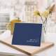 Personligt marinblått och vitt vikt notkort. Inkluderar ett förskrivet, utbytbart meddelande som också kan raderas.