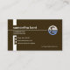 En mörk brunt hölje förstärks av två uppsättningar av vitt avgränsat linjer. Den översta tunna linjen har din prestigefyllda namn, jobbtitel och namn. En global logotyp som du kan använda till använda finns i slutet av den tunna linjen. Kolumnraden för lodrät till den lämnat har triangelknappar som håller fast vid kontaktinformationen. I det nedre hörnet av högerna finns en slogan för att publicera dina tjänster.