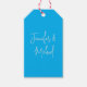 Professionell minimalistisk azurblå kalligrafi presentetikett