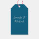 Professionell minimalistisk havsblå kalligrafi presentetikett