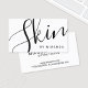 Professionell Modern Black and White Skincare Specialist-Affärskort med ord "skin" i det moderna kalligrafteckensnittet stil på framsidan och detaljer i det moderna sans serif-teckensnittet stil på baksidan. Perfekt för specialister på hudvård, estetiker, spa och många andra yrken.