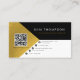 Ett modernt minimalistiskt affärskort för personlig för vem som helst. Ett enkelt och professionell sätt att presentera ditt företag. Anpassa med din QR-kod och information för att skapa din egen unika elegant svart och guld-affärskort. Anpassa ännu mer med en bakgrund eller ett teckensnitt för anpassningsbar färg. Social-medieikoner som ingår i affärskortets utformning för använda.