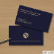 Gör ett bestående intryck med vår Professionell Modern Minimalistiska Mörk blått Affärskort med klassisk typografi. Baksidan har ett slående geometriskt emblem i guld som kan ersättas med din logotyp, tillsammans med utrymme för en ansvarsfriskrivning för branschen. Perfekter för revisorer, skatteförläggare, finanskonsulter eller andra professioneller inom näringslivet tittar ge ett varaktigt intryck.