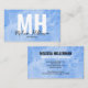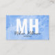 Chic Modern Minimal Blue Watercolor Monogram-Affärskort. En roligt och ett enkelt affärskort för varumärken, småföretag eller enskilda personer som t.ex. lashspecialister, konstnärer, estetiker, hårstilister, företag eller kontorsföretag och så mycket mer! Högerna är nu en blå, svart och vit färg, men du kan byta ut färg mot spelar ingen roll som du vill ha använda! Den vita vattenfärgen mönster förblir överlagrad över färg som du väljer för bakgrunden. En blandning av modern och skripttypografi för en professionell men chic.