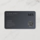 Modern Elegant Simple Design Anpassningsbar Text Monogram Initial QR-kodmall Black/Mörk Grått Namnteckning Affärskort med ändpunkter från projektionsyta. Perfekt för Real Gods Agent, revisorer, Realtors, mäklare, advokater, Läkare, företagskoncerner, Stylist, arkitekter, Ingenjör, direktörer, chefer, konsulter, konstruktörer, lärare, musiker, alla Professioneller.