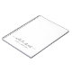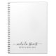 Professionell modern anteckningsbok med namn i svart modern skrifttyp med anpassad text i svart modern sans-serif-stil på vit bakgrund.