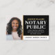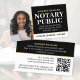 Gör ett intryck av professionellen med de här affärskorten för snyggt. Den här redigerbara mallen är personlig med ditt ID-foto, namn, autentiseringsuppgifter, kontaktinformation och en skannerbar QR-kod. Anpassa texten till kostym för ditt företag. Perfekt för en notarius publicus, ett lån som undertecknar Agent, ett mobilt notarius publicus, Auktoriserad Notary Trust Delivery Agent (CNTDA), eller andra jurister. Tryckt färg: svart, vitt och guld. Köp onlinen för mer populära produktidéer och produktartiklar, designade för notarier!