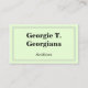 Denna klassiker, professionell, och den vanliga visitkortdesignen presenterar en blek - grön bakgrund och enfodra gräns med ett streckat fodra in - between. Den kunde användas av en professionell liksom en arkitekt, en inre formgivare eller en insidadekoratör. Namn, yrket och kontakten specificerar kan vara personligen.