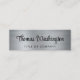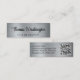 Professionell mini-affärskort med en borstad silver faux-metallisk bakgrund, ditt namn i ett fet, snyggt-skript och din titel eller ditt företag namn i enkel modern typografi. På baksidan anger du webbplatsens URL adress för att skapa en skannerbar QR-kod och anpassa ytterligare kontaktinformation.