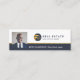 Modern och professionell verklig gods-affärskort med en fotoplatshållare som är inbyggd i designen för att visning ditt eget foto porträtt. Ren, minimal layoutdesign med snyggt marin och guld riktig logotyp i gods som du kan anpassa med ditt företag namn eller ta bort och ersätta med din egen logotyp. Namn och titeln visas på en framträdande plats längs grund i ett marint blått rand. Diskret faux guld-accenter ingår i designen för att lägga till en elegantens professionell. Anpassa till din kontaktinformation. Den omvända sidan har ytterligare kontaktinformation. Du kan ändra bakgrunden färg, teckensnitt, teckensnitt färg och layout till kostym om du vill. Logotypens utformning i den här designen är originalgrafik efter modell.
