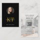 Ett vackert svart och guld modernt affärskort med QR-kod. Ett enkelt och professionell sätt att presentera ditt företag. Mediehandtaget för social som ingår i affärskortets design för använda. Anpassa dina uppgifter för att skapa ditt eget unika affärskort.