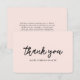 Tack för professionellens affärskort, med en enkel och minimalistisk layout med "tack" i ett elegant-penselskript. Texten är svart över en feminin bakgrund för rosa och färg kan ändras till vad du vill i verktyg för designredigering.