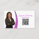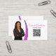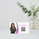 Det finns bara en liten remsa falskt rosa glitter på framsidan och baksidan av detta visitkort. Framsidan har en platshållare för foto till vänster med mallnamn och titel plus QR-kod till höger. Baksidan har en koordinerad design med textfält för företagsnamn och detaljer. Ersätt fotots platshållare med ditt eget foto i vertikalt format och länken till en QR-kod. Anpassa mallfälten eller redigera med hjälp av designverktyget för att välja en typsnittsstil, storlek och färg du gillar. Använd QR-kodlänken för att skicka potentiella kunder till din webbplats, din recensionssida, dina foton eller andra företagssidor. Fotots platshållare är från pixabay.com.