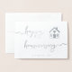 Önska dina kunder en "lycklig husårsdag" med detta eleganta, professionella silverfolie-vikta vykort. Anpassa ditt företagsnamn längst ned för en personlig touch.
