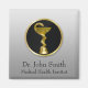 elegant av professionell för medicinska ändamål: Oädel guld Caduceus-symbol orm och Hygieia tarl på en rund svart bricka med lätt grått-bakgrund. Perfekt för all verksamhet som har samband med hälso- och sjukvård, t.ex. ett sjukhus, ett kontor i doktor, en klinik eller ett sjukhus. För sjukhuspersonal, läkare, sjuksköterskor; klasser, ädel och elegant.