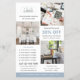 Dra till dig en större kundkrets till din verksamhet med marknadsföringsflyers! En professionell mall som är personlig med din logotyp, fotografier, företagets rubrik eller slogan, lista över tjänster, specialerbjudande, öppettider och kontaktinformation. Dessutom kan du lägga till en QR-kod och ytterligare information på baksidan. All text kan anpassas, så att du kan inkludera de detaljer du vill. Flyers och broschyrer är ett effektivt sätt att marknadsföra ett evenemang, öka försäljningen, öka varumärkesmedvetenheten och uppmuntra återkommande kunder! Tryckta färger: dammig blå, vit och mörkgrå.