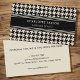 Skapa ett första snyggt-intryck med affärskortet chic och elegant. En modern mall med den koniska houndstooth mönster, parad med kontrasterande rand. Anpassa med namn, befattning, professionell och kontaktinformation. All text kan anpassas eller tas bort till kostym som ditt företag behöver. Den här klassiska utformningen är perfekt för många olika arbetsplatser och yrken, bland annat mode, skönhetskonsulter, kreativ, designers i insida, företagskoncerner, små professioneller och mycket annat! Färg: svart och benvitt.
