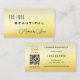 Affärskort med söt lätt gult guld metallisk utformning. På baksidan finns utrymme för din logotyp och QR-kod. Snygg för en skönhetsalon eller konstgjord konstnär.