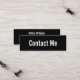 Det här mini svarta affärskortet säger "kontakta mig" på affärskortets framsida. På baksidan finns fyra linjer visning text för ditt namn och kontaktinformation, t.ex. ditt mobila nummer, e-postens adress och/eller social medieferens. All text kan redigeras eller tas bort.