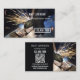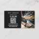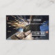 Företagskort med en svetsare i arbete. Rektangeln runt telefonnumret är en anpassad form och kan justeras efter dina behov (eller raderas). QR-koden är också valfri och kan anpassas. Vacker för en professionell svetsare eller svetsningsföretag.